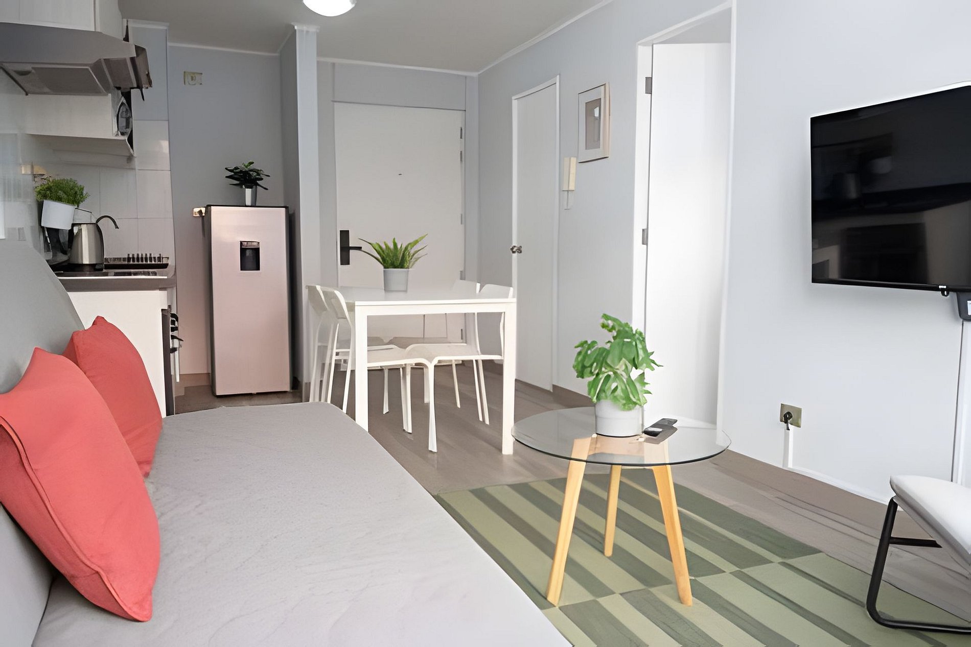 Cómodo departamento en La Cisterna. Cocina equipada, sala de estar acogedora, dormitorio ideal para descansar y decoración encantadora. A solo media cuadra de la estación de metro, perfecto para explorar la ciudad. ¡Tu estadía en Santiago será inolvidable!